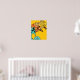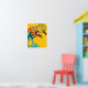 Perfect for a kid's bedroom or playroom with original illustration design from watercolour and ink by artist Sacha Grossel of yellow, brown and blue chameleon against mustard yellow background. This quirky and special reptile is cute and bright. For lizard and reptile lovers everywhere