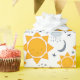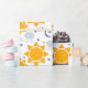 Yellow kawaii suns with stars, moons and clouds wrapping paper