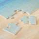 Yellow kayak on a white beach with palm jigsaw puzzle