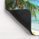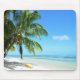 Mousepad of a yellow kayak under a hanging palm tree on a white sand beach on the tropical island of Moorea, near Tahiti, in the Pacific archipelago French Polynesia.