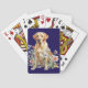 Playing cards with yellow lab dog design. A beautiful pup sits among tall wildflowers on a dark, navy blue background.