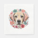 Yellow Lab Labrador with flowers floral Embroidery Napkin