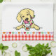 Unique and funny Labrador Retriever Cartoon created by Naomi Ochiai from Japan. Great fun gifts for dog lovers who own Yellow Labradors. An adorable Yellow Lab Puppy is licking his/her ice cream on the table with his/her big tongue!! Cute and sweet Labrador Cartoon. You can see a little red heart and arrow on the ice cream container. :) Colourful hearts and Girly Gingham pattern. You can customise text!