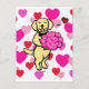 Cheery and smiling Yellow Labrador is holding Pink Rose Bouquet! Girly pink hearts background. Unique and funny Labrador Retriever Cartoon created by Naomi Ochiai from Japan. Send this card to Yellow Labrador fans!