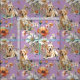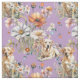 Yellow Labs repeating, seamless pattern fabric. Wildflowers and Labrador dogs make a fun pattern over a pretty, lavender color.