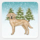 Yellow Labrador Retriever Blue Snowy Winter Forest Square Sticker