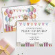 Host a memorable Labrador Retriever dog theme birthday party with the help of this adorable Labrador Retriever design by Destei. The design features a cute cartoon illustration of a yellow colour Labrador Retriever breed dog standing among some pastel colour birthday balloons, gifts and a bunting banner. The pastel colours include pink, green, blue, red, orange and purple. The dog is standing on a yellow wood floor texture and the background has a playful pastel colour polka dot pattern. Personalise the sample text areas with the details of your event.