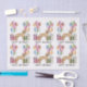 Destei's original cartoon illustration of a cute yellow Labrador Retriever breed dog. The dog is placed in a colourful birthday setting with pastel colour birthday balloons and gifts. The pastel colours include pink, green, blue, red, orange and purple. The background has a playful pastel colour polka dot pattern. There is also a personalizable text area that now reads: "Happy Birthday!". The design is placed six times creating a small pattern.