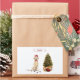 This yellow lab is so sweet as it sits so pretty with a santa hat and red bow tie! The Christmas tree with presents under it is awaiting the special holiday! Wish a paws-itively happy holiday with this humourous gift!