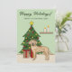Yellow Labrador Retriever Green Festive Christmas Holiday Card