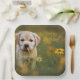 These birthday party plates feature an adorable yellow Labrador retriever.