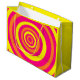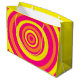 They'll love receiving a gift that comes in this groovy large gift bag with artwork by Buttercup's Clothing and Collectables. Super cute gift bag features a retro inspired pattern in shades of hot pink, orange, and yellow, with a yellow background.