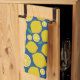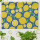 This is cute yellow lemons with little slices on blue background. It's great looking design as a kitchen towel