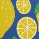 This is cute yellow lemons with little slices on blue background. It's great looking design for kitchen and living room wallpaper
