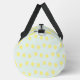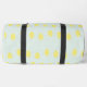 Yellow lemon slices on blue duffle bag