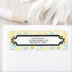 Address labels design with a a quaint and cute pattern composed of yellow lemons and pastel blue flowers in a hand drawn illustrated style. An elegant frame in the centre for your text makes your information easy to read.