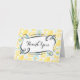 A fresh and fruity wedding (or other events / situations) thank you card. A fancy whimsical frame on the front holds the words thank you. The inside has a a custom message which you can change, as well as a place to enter your name(s). Designed with a a quaint and cute pattern composed of yellow lemons and pastel blue flowers in a hand drawn illustrated style. Perfect for outdoor BBQ or casual style weddings and events.