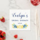 Add your own information to create custom party napkins that are perfect for spring and summer bridal showers and other special events. Blue script and print lettering spells out your party info while an accent of yellow lemons with mint green and royal blue flora and foliage accents gives these party supplies a fun and fresh look. All of the text on these paper napkins is ready to be customised with your own info.