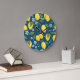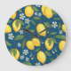 Yellow Lemons: Tropical Fruit Pattern. Large Clock