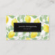Modern professional business cards designed with yellow lemons and green leaves, in a repeating pattern.