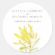 Beautiful watercolor spring yellow tulip leucadendron wedding sticker. Personalise with your bride and groom's name and wedding date. Part of the yellow leucadendron watercolor flower wedding stationary set. © Original watercolor art and design by Sarah Trett. www.sarahtrett.com for www.mylittleedenweddings.com