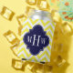 Yellow and White Large Chevron ZigZag Pattern, Navy Blue 3 Initial Monogram Label
