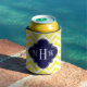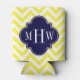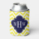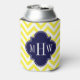 Yellow Lg Chevron Navy Quatrefoil 3 Monogram Can Cooler