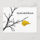 Stylised photo of a lime, linden, tilia tree branch of black colour and a single yellow leaf. Autumn, fall theme. Season and Thanksgiving greetings and gifts. Text My heartest thanks. You can change or delete the text