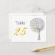 a grey whimsy love tree with two yellow love birds on tree branch, mod and trendy wedding table numbers cards. Matching products also available.. Change Table number on each card and then do "add to cart"