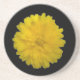 This pretty sandstone coaster features a photo of a pretty yellow marigold flower on a black background.