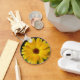This beautiful keychain features a detailed photograph of a yellow marigold with a dark centre. The photograph was taken using macro photography. You can see all the tiny water droplets sitting on the petals of this exquisite flower.