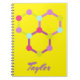 This yellow modern molecules, features a light yellow background with a molecules formed of colourful atoms. With your name written underneath in fun purple font, personalise yours today!