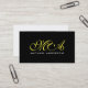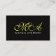 Yellow Monogram Elegant Script Black Background Business Card