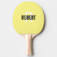 Modern ping pong paddle with a yellow background, a white monogram and a black typography name. Personalise with your name and monogram.