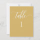 Modern and elegant minimalist style yellow mustard table number with modern hand written calligraphy details. Clear area on the bottom allowing you to use all kinds of table number holders without obstructing the number. Modern medium size card for a sleek, simple look. Available in a variety of colours. Have all tables in same colour, or mix several colours complimenting your colour theme. Coordinating table seating plan cards with guest names, as well as slim guest name place cards also available.