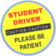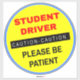 Yellow New Student Driver Sticker - Please Be Patient Sign - Student driver stickers are commonly used by new drivers who are still learning how to operate a vehicle.