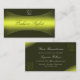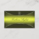 Yellow Olive Green with Silver Border and Monogram Business Card