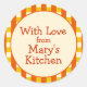 Yellow and orange chequered border lends a homey, country kitchen feel to any can or jar! Choose from two different sizes of round stickers, and customise the text. These would be great for pickles, salsa, or chutney, but you could also use them for non food related sticker needs such as decorating envelopes and packages, labelling items around the house, and a hundred other uses! See all our customisable labels!