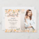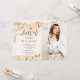 Trendy yellow orange floral watercolor and brown script calligraphy typography class of graduation party invitation on white.Perfect for a chic botanical elegant grad party. Add your your photo.