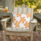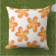 Pillow printed with original acrylic flower pattern in yellow and orange on white background.