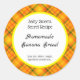 A retro plaid pattern of yellow and orange with smaller brown and green stripes on custom food or baking stickers with script and vintage block letters for your name or small business, recipe title and room for ingredients, weight, address, or more information. Customise it to change fonts, add or remove text, add your own logo or image and even save your design for later!