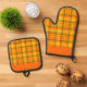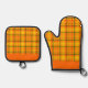 Yellow Orange Plaid Pattern Orange Borders Oven Mitt & Pot Holder Set