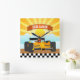 Yellow Orange Race Car Personalized Name Kids Room Square Wall Clock