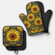 Yellow Orange Sunflower with Green & Brown Oven Mitt & Pot Holder Set