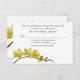The text on this elegant pale yellow orchids wedding reply or RSVP card is fully customisable. The colours are pale yellow, cream, and green - soft wedding colours. Perfect for spring and summer weddings or weddings with a yellow orchid theme. To change the text use the personalise option. For more extensive changes to the card including changes to the font, font colour, font size, or text placement, use the customise option. Although currently customised as a wedding reply card, this could also be used as a reception, direction, and/or accommodation card with changes to the text. This card is currently set to print on ice white metallic paper, but also looks very nice on many of the other paper types.