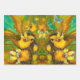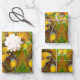 Yellow Orchids Magical Gold Sparkles Stars Green Wrapping Paper Sheet