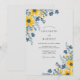Vibrant yellow blooms contrast beautifully with muted slate blue foliage and delicate accent petals. This watercolor design features bright sunflowers and clusters of wild blue cosmos against a clean, crisp backdrop. Ideal for an outdoor summer ceremony or a rustic countryside event, the palette evokes a warm, cheerful atmosphere. The artistic brushstrokes and soft color transitions create a sophisticated yet relaxed aesthetic.