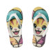 The flip flops arrived in a most colorful package which also had them double bagged in a black drawstring pouch which makes them great for gifting. They are a quality product with plenty of durability. The printing is vivid and true to that pictured on the web. Great look!