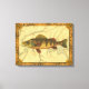 This print illustrates an artistic picture of a yellow perch fish. The background displays a vintage geographic map in light beige colours. The brown frame resembles old wood pattern with yellow-red flowers in the edges. A great addition to your fishing collection!