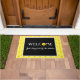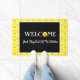 This bouncy graphic makes an awesome home decor welcome Pickleball Doormat with a yellow pickleball ball replacing the O in Welcome with the warning often heard in pickleball - just stay out of the kitchen.